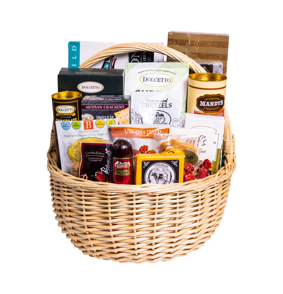 The champion of gift baskets! A premium selection of the best meats, sweets and savory treats we have to offer, including smoked salmon, sausage, cheese, crackers and a variety of salty and sweet goodies. *please note photos shown may not match exactly to finished product due to changes in availability.
