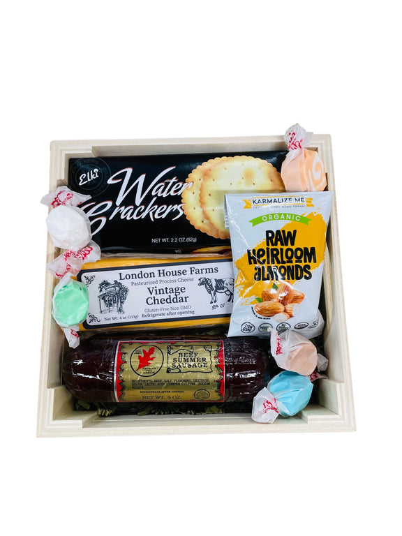 Our Northwest Man basket is filled with all our favorite "Man Treats". This basket is perfect for the hard to shop for man, but also makes a great gift for anyone. Our Northwest Man Basket includes Summer sausage, cheese, mustard, crackers, nuts and more. Also enjoy smoked salmon in our $55, $75, and $100 selections *please note photos shown may not match exactly to finished product due to changes in availability.