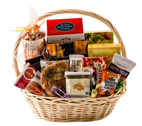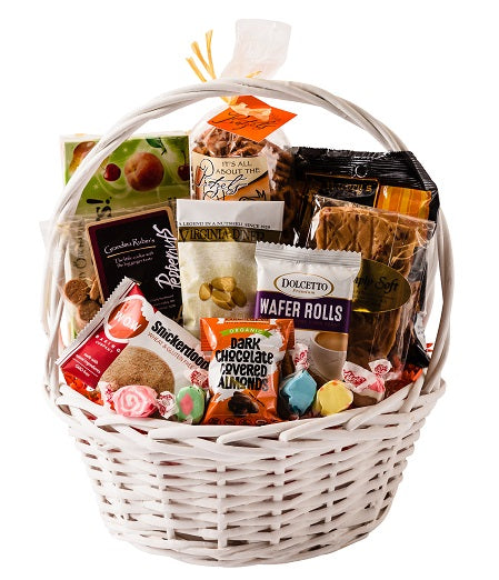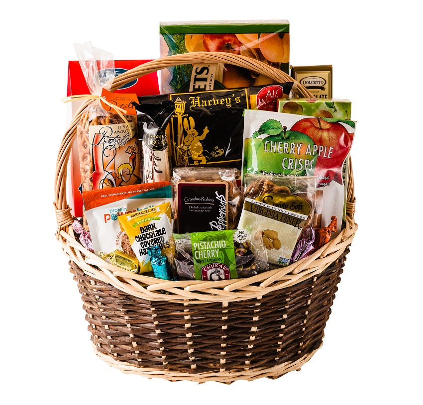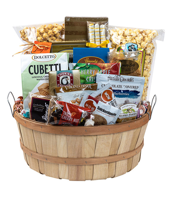 All of our favorite sweets and treats come wrapped together and ready to be enjoyed. Included are such goodies as our famous soft peanut brittle, gourmet popcorn, a variety of nuts and candies, gourmet chocolates, and more! *please note photos shown may not match exactly to finished product due to changes in availability.