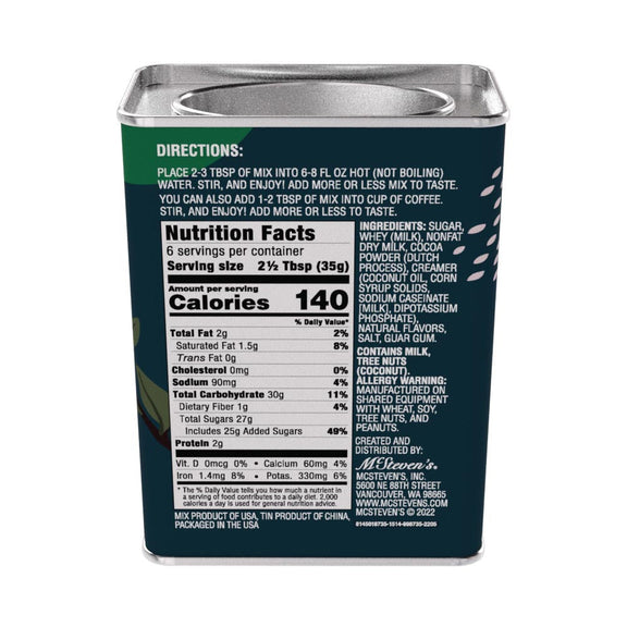 Enjoy this naturally flavored Candy Cane Hot Cocoa in a decorative floral Christmas styled tin. Mix with water or milk and sip away! Net weight 8 oz.