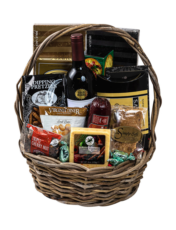 Our Classic Collection is our number one seller and comes filled with a variety of our best meats and sweets, including smoked salmon, cheese, crackers, sausage, our famous soft peanut brittle, savory nuts, decant chocolate filled wafer rolls, gourmet pretzels, chocolates, cookies, and more.