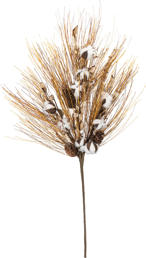 Encompassing true seasonal farmhouse style, a 40" cotton and needles spray pick with pinecone accents that's the perfect touch for fall!