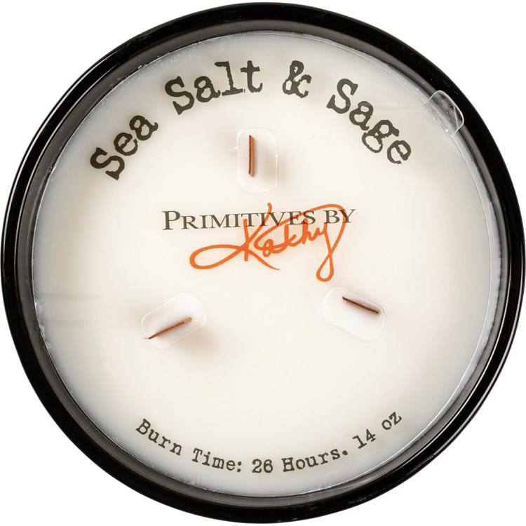 A matte black glass vessel holds this soy-based wax candle which features a refreshing sea salt & sage scent and "Dog Lover For The Person With The Smelly, Hair Ridden, Chew Toy Infested House, Whose Yard Is Always Hiding Just A Few Land Mines." sentiment. The smart sentiment on the front makes this item a perfect and easy gift that feels tailor-made for the dog lovers in your life. Candle contains three wooden wicks for a total of 26 hours of burn time. Includes a plastic wax cover for protection and a polished look.
