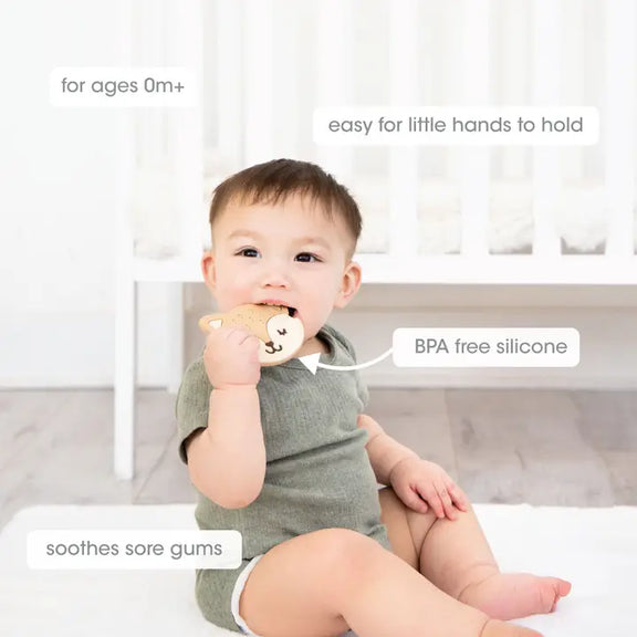 · Adorable Woodland Theme: Featuring an endearing fox shape, our neutral beige teether sparks your baby's curiosity and imagination, turning teething time into an adventure.