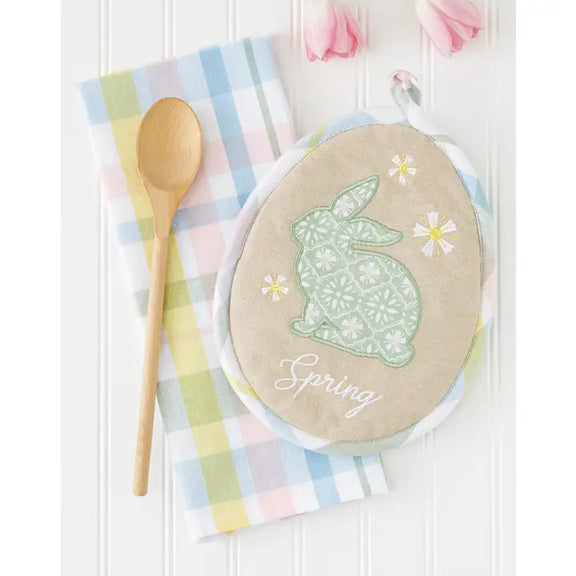 Set includes 1 plaid dishtowel folded inside an embellished potholder | Dishtowel 18 x 28" | Potholder 8 x 9"