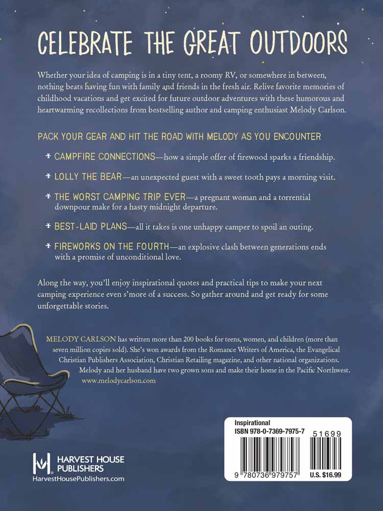 Whether your idea of camping is in a tiny tent, a luxury RV, or somewhere in between, nothing beats having fun with family and friends in the fresh air. Relive favorite memories of childhood vacations and get excited for future outdoor adventures with these humorous and heartwarming recollections from bestselling author and camping enthusiast Melody Carlson.