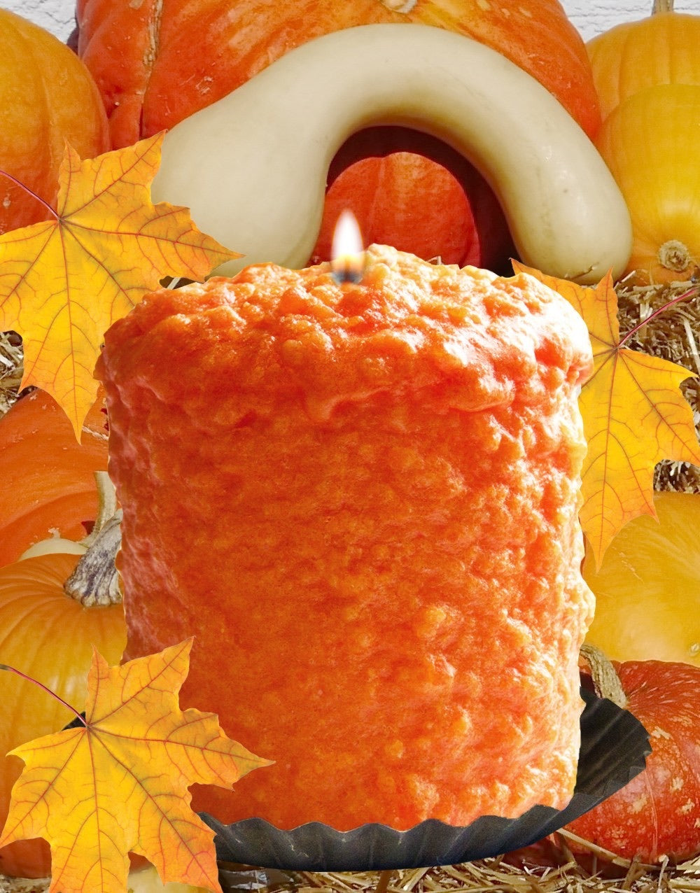 Fall Harvest: This candle will warm your soul with the scent of pumpkin spiced with clove, nutmeg, and cinnamon.
