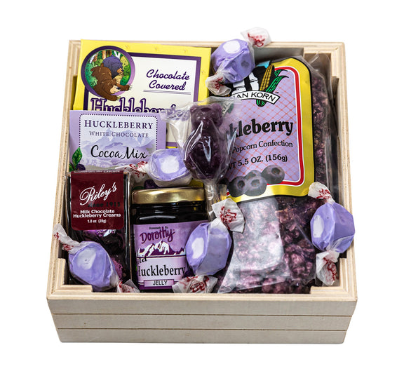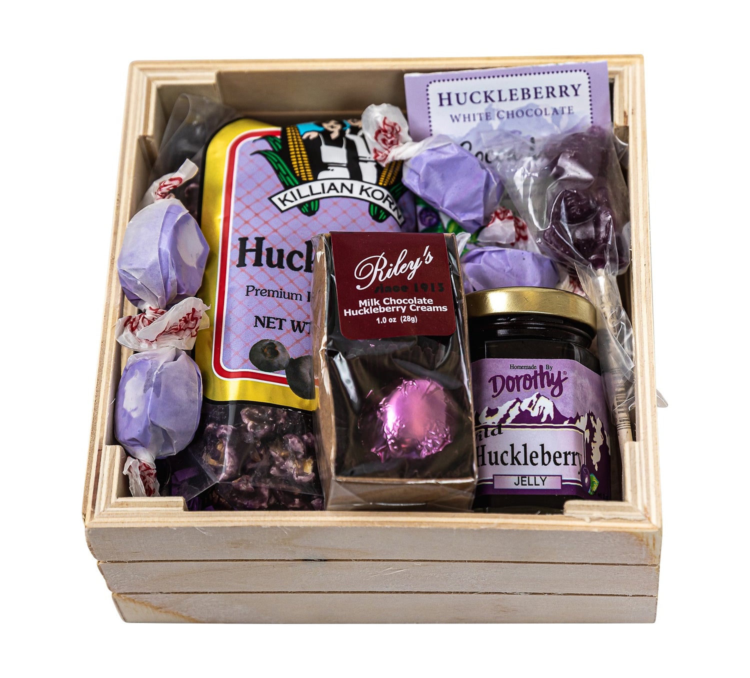Share a Northwest favorite with our medley of huckleberry delicacies. This heartwarming array of delicious homegrown huckleberry goodness includes our most popular huckleberry treats; including huckleberry gourmet popcorn, jelly, cocoa, milk chocolate huckleberry creams, and a lovely variety of huckleberry candies.