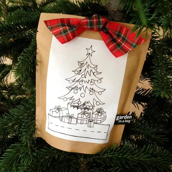 Plant a holiday memory to be enjoyed for generations to come. Your Christmas tree-to-be will one day grow to be a majestic Scotch pine. This decorative and fragrant tree has a formal beauty all its own and is a preferred Christmas tree around the world. Includes: seed, growing medium, OMRI coconut husks for drainage, crayons, leak-proof coloring bag, to/from tag to personalize, directions
