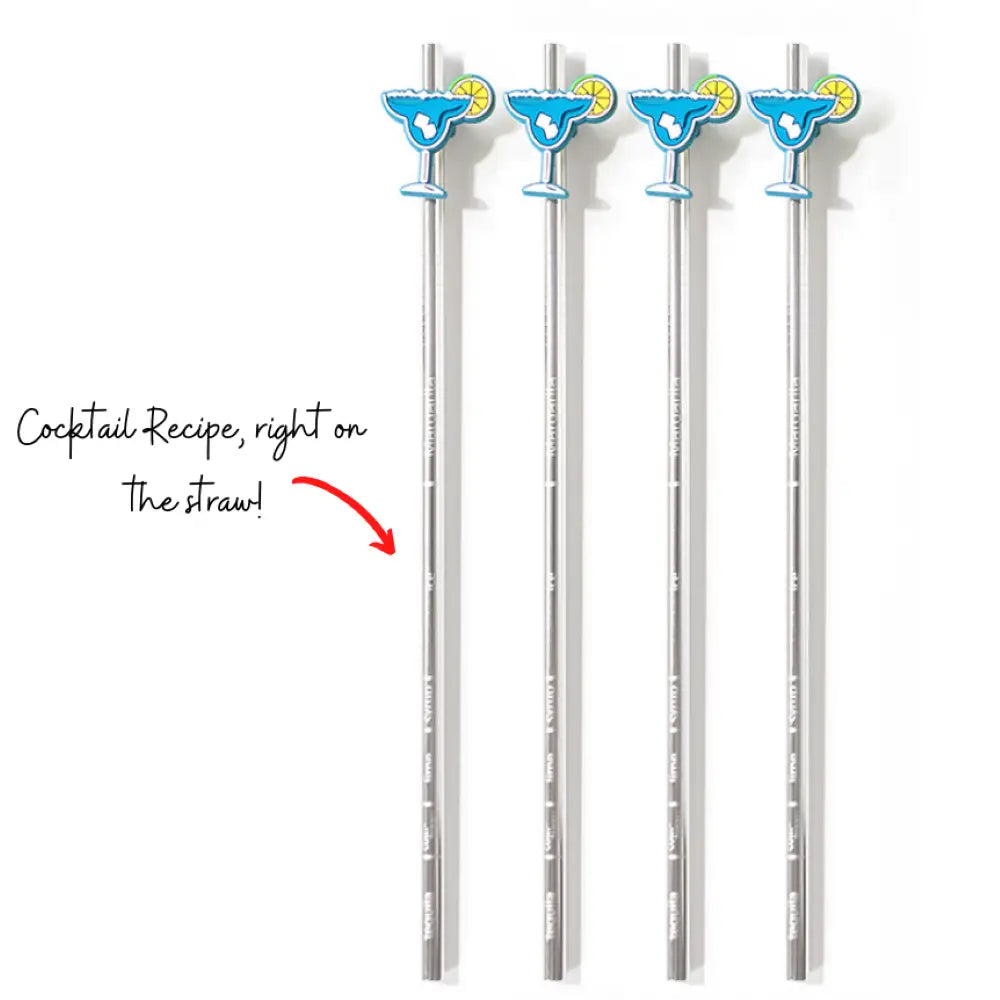 Move over mixologists! Our easy-to-use Straw Tails have ingredients and portions etched right on the straws, so you can measure and mix your favorite drinks flawlessly. Each pack comes with (4x) stainless steel recipe straws and (4x) fun silicone drink markers. The Perfect accessory for any vacation, Cinco de Mayo party, gift basket. Pair it with a margarita mix and you are set! A great gift for someone who has it all!
