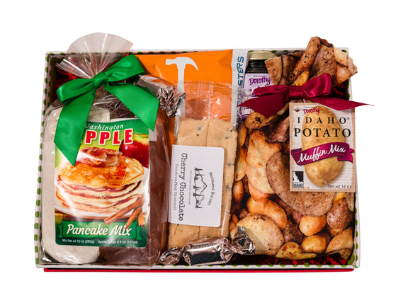Start the morning with the flavors of the Pacific Northwest! This thoughtful gift includes a delicious assortment of locally made breakfast favorites: fluffy Washington Apple Pancake Mix with sweet Apple Syrup, hearty Idaho Potato Muffin Mix, and fruity Huckleberry Jelly. To pair perfectly, we’ve added Thomas Hammer’s Signature Blend Coffee Pack, crisp biscotti, and indulgent espresso-flavored chocolate truffles. Beautifully presented, this gift brings the warm and comforting taste of the Northwest to the breakfast table.