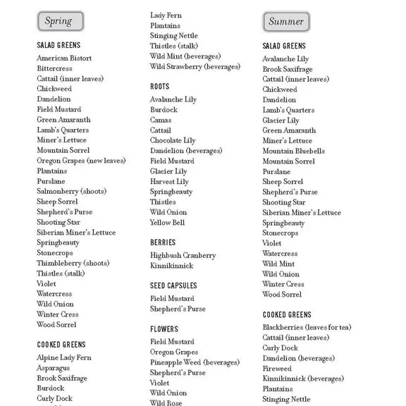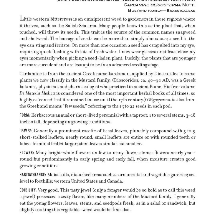 Features include detailed illustrations of each plant, an illustrated guide to general plant identification principles, seasonality charts for prime harvesting, a selection of simple foraging recipes, and a glossary of botanical terms.