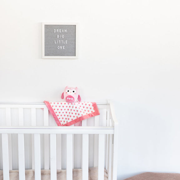 Give your baby a sense of security comfort and sooth them to sleep with this easy to cuddle pink owl snuggle blanket by Pearhead