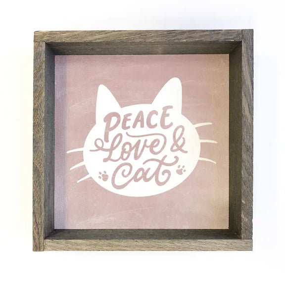 Peace Love Cat! Cute sign on a pink background for the cat lovers.