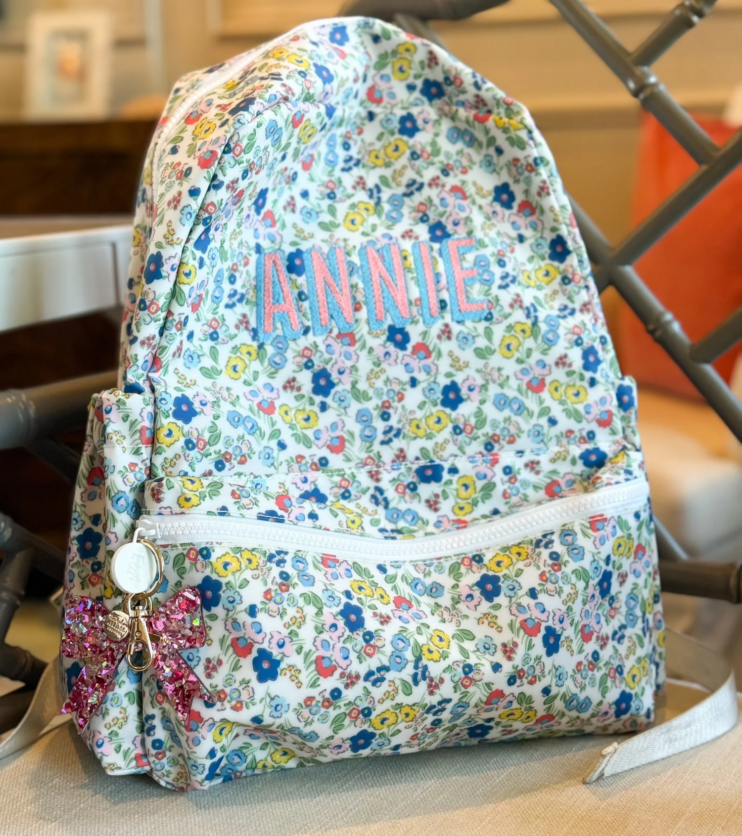 Girly, sweet, and the cutest tote or backpack accessory!