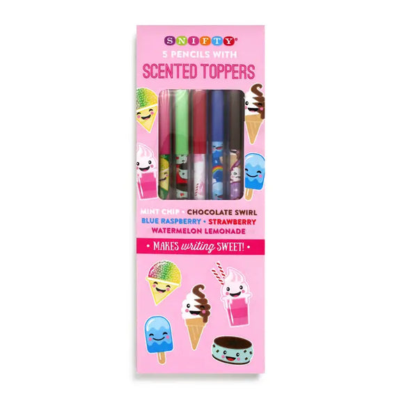 Cute Ice Cream Emoji pencils topped with reusable Ice Cream scented caps! Your kiddos are sure to LOVE these...maybe your favorite adults too!