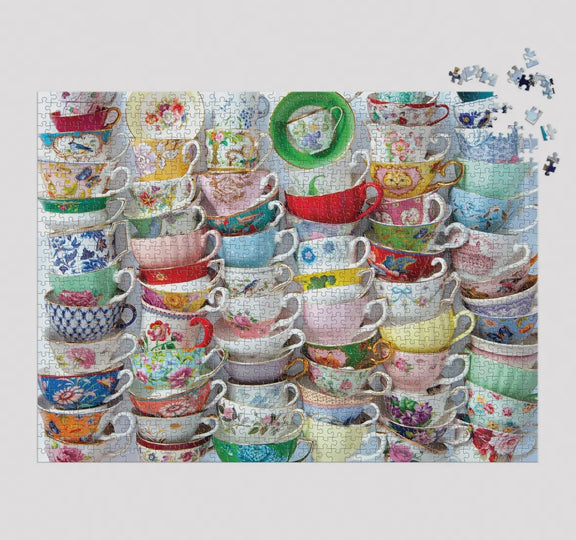 This 1000 piece puzzle features a Regency core style mix of teacups, with patterns and details to make any tea party enthusiast proud!