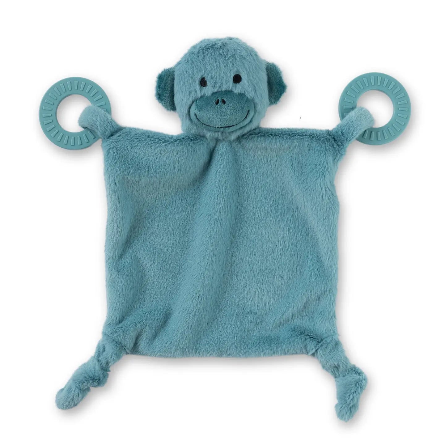 Featuring a plush friend to cuddle and teething rings to soothe sore gums, the Teether Buddy is the ultimate companion. The gentle rattle makes it a fun toy for infants. This Buddy was designed to grow with baby through the first years and remain their toddler companion. -Size: 13" x 14" -Age: 0 months+ -Non Toxic -Food Grade Silicone Teether Rings -FDA Approved -Free of BPA, PVC, Phthalates -Soft Polyester Faux Fur