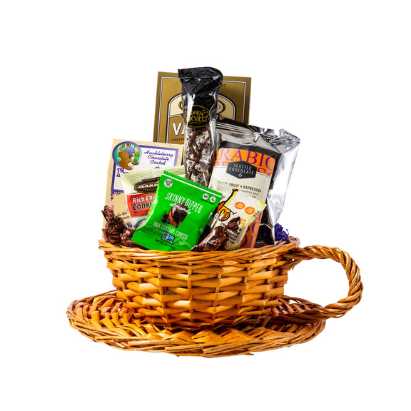 Give Mom something fun and unique this Mother's Day with our coffee themed Gift Basket. This basket comes filled with a packet of Northwest brewed coffee, a delicious biscotti, gourmet coffee flavored chocolates, and more! Pick our $60 selection to have us add a $10 gift card to a coffee shop. (local coffee shop if basket is being delivered here in the Spokane area and a Starbucks gift card if basket is being sent outside of the Spokane area.)