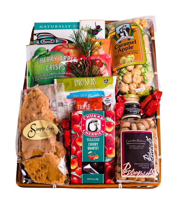 Celebrate our beautiful state with a sampling of our best made in Washington products. They're sure to savor the true taste of Washington with these wonderful items including; smoked salmon, cherry apple crisps, Walla Walla sweet onion mustard, caramel apple popcorn, Aplets and Cotlets fruit and nut candies, and much more.