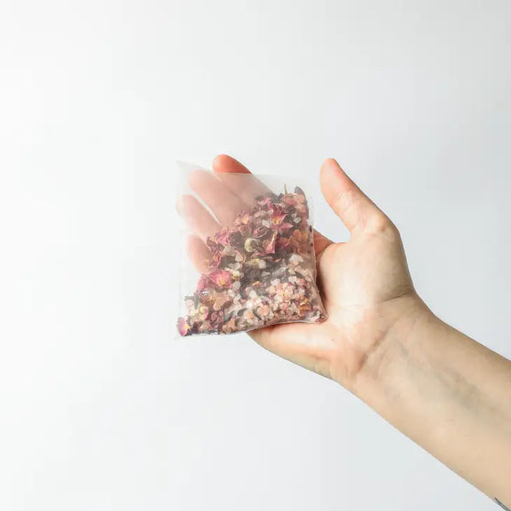 Ingredients: organic hibiscus, organic rose, Himalayan Salt 1 bath satchel per unit