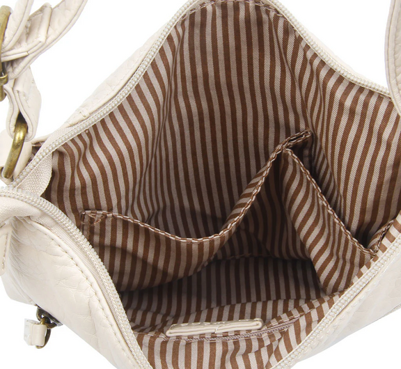With multiple zipper pockets for organization, this casual crossbody bag is perfect for day-to-day use. The Camile Three Zip Crossbody bag is made from super soft vegan faux leather and features a small shape with brass toned hardware, adjustable strap up to 24 inches that makes it comfortable to carry across the body. Detailed with three front zipper pockets for added style and added storage, this handbag features a small main compartment with a zip top closure and a fully lined cotton striped interior that offers ample storage for your most essential items. The interior includes a back wall zipper pocket and a multipurpose slip pocket to hold small items.