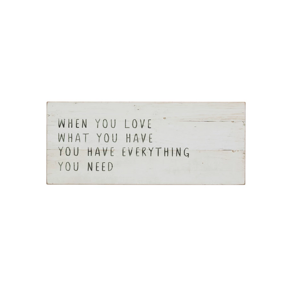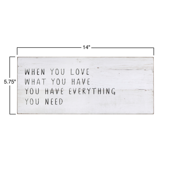 Some things are so simple that they are profound. This "When you love what you have, you have everything you need" wood block says it all. Hang it on a wall or display on a shelf or tabletop.