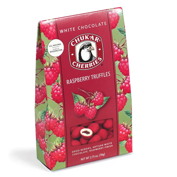 Dried cranberries layered with premium white chocolate rolled in tangy powdered raspberries. Our cranberries are harvested in western Washington's North Cove.