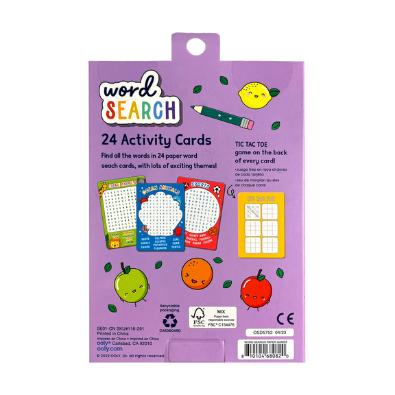 Word search games are a fun-filled on-the-go goodie for your cutie pie! This set of 24 easy puzzles is a whimsical activity that also promotes learning! Each activity card has a different theme to keep your little one searching! Searching for fun rainy day activities for your kids? Look no further than these sweet word search games. The set includes 24 puzzles - each featuring a different theme like back to school, breakfast foods, and fruit! Word search games can be a great learning tool and this is designed for kids six and up. And, as a bonus, every activity card has a game of tic-tac-toe on the back, so the fun never ends!
