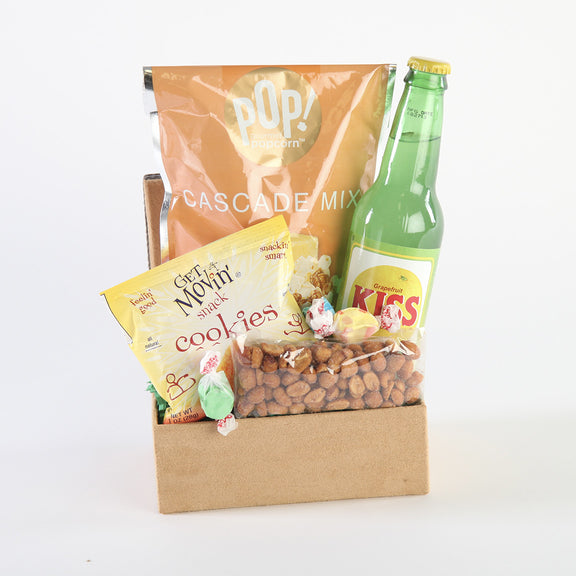 Send this basket to your Dad or Grandpa this Father's Day to show them how much you love and appreciate them! This fun gift comes filled with gourmet popcorn, an old fashioned bottle of pop, crackers, nuts, and other snacks.