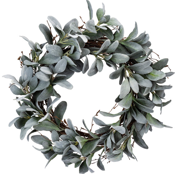 A soft to the touch lamb's ear wreath featuring subtle twig details that's easy to hang and perfect for the season.