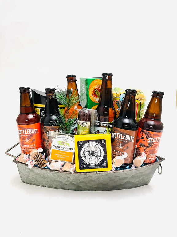 Our best selling metal boat tray comes filled with Northwest beers, salmon, cheese, crackers, nuts and other sweet and savory treats. The perfect gift for the one that "Floats your Boat"!